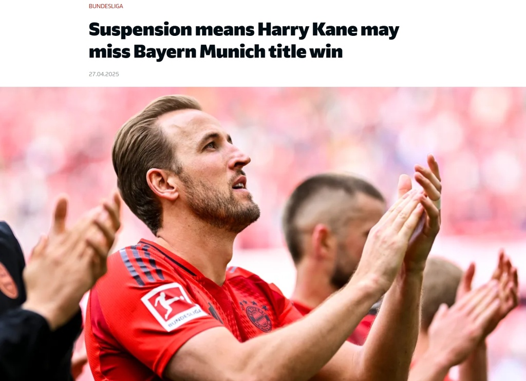 英格兰队长哈里-凯恩的魔咒似乎还在延续——尽管即将结束对重大赛事冠军的漫长等待,但在拜仁慕尼黑有可能下周锁定德甲冠军时,凯恩却将停赛无法登场。拜仁原本有望在上周六提前夺冠,但勒沃库森3-0战胜奥格斯堡的结果使得德甲争冠悬念将延续至第32轮。凯恩在拜仁3-0完胜美因茨的比赛中领到本赛季第五张黄牌,最终比赛结果让拜仁距离夺冠只差一场胜利。