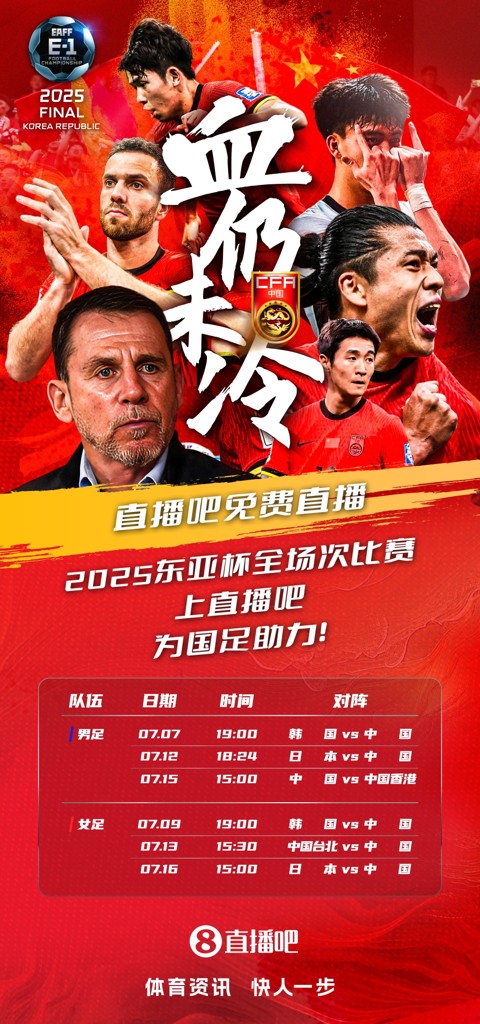 直播吧视频直播预告|15:00东亚杯国足vs中国香港 林梦鸽&杨晨解说
