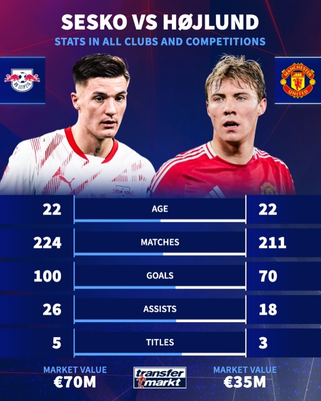 注:塞斯科职业生涯效力球队为萨尔茨堡红牛、列弗灵(租借)、莱比锡。霍伊伦为哥本哈根、格拉茨风暴、亚特兰大、曼联。