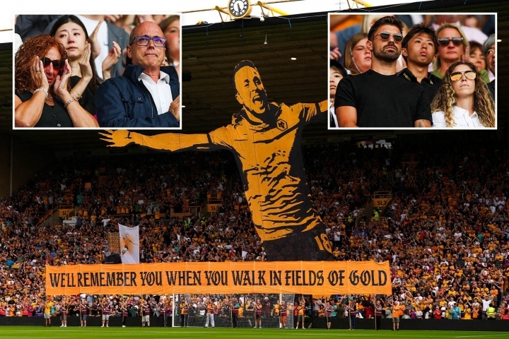狼队英超首轮举行活动纪念若塔 若塔父母和妻子、鲁本-内维斯出席