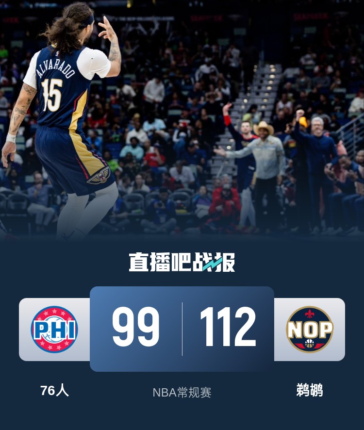 残阵对决!奥利尼克14+11+7 米西16+9 鹈鹕主场轻取76人