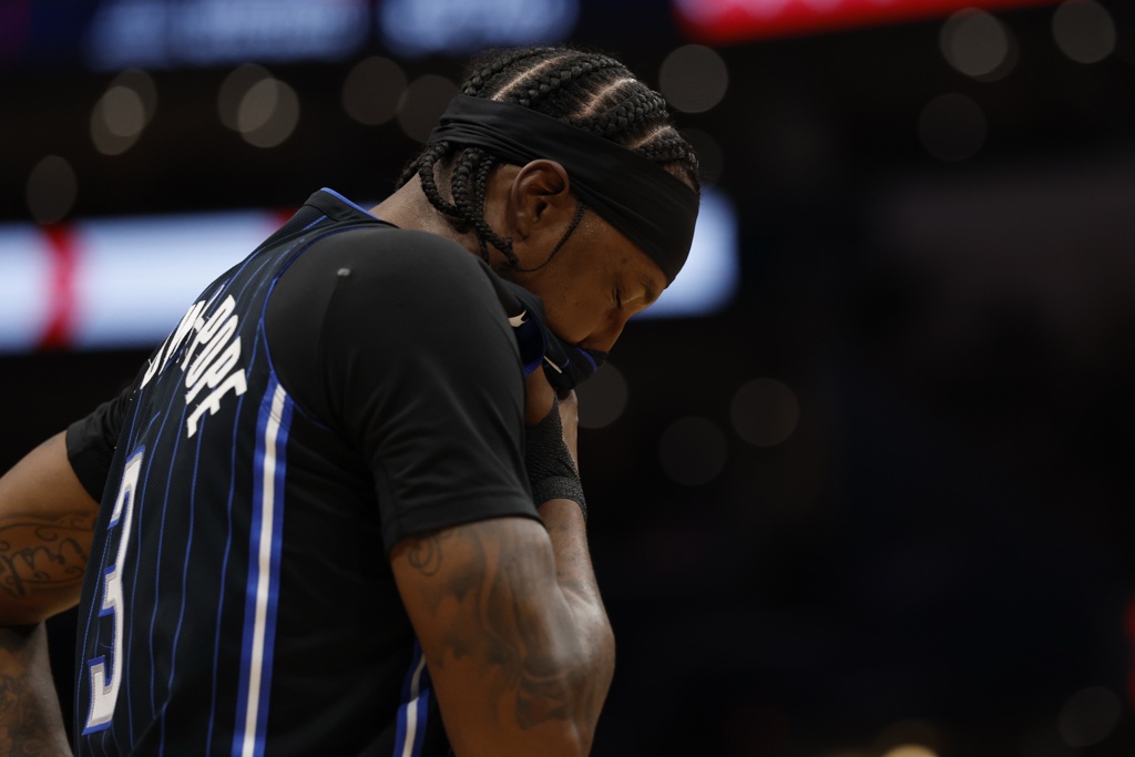 冠军3D后卫波普在掘金最后一季场均三分球命中率达到了40.6%,这样的投射表现完全配得上3年6600万合同。波普以自由球员加盟魔术后,表现经历了断崖式下滑,准星全无:常规赛场均三分球命中率34.2%,近10年新低;季后赛表现惨不忍睹,投篮命中率仅有26.7%,三分球命中率26.1%——作为一个31岁、拿过两个冠军戒指的老牌3D后卫,波普在魔术第一年的表现堪称灾难。