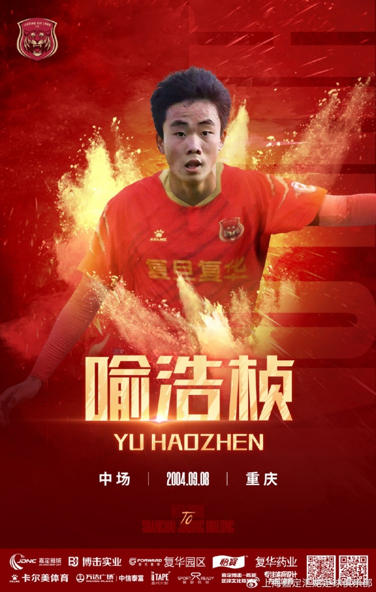 官宣|U21球员喻浩桢回归上海嘉定汇龙,07小将周杨杰上调至一线队