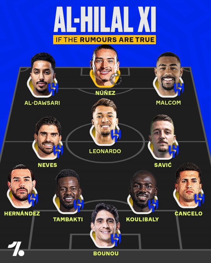 亚洲横着走!利雅得新月潜在首发:努涅斯+内维斯+特奥+坎塞洛…